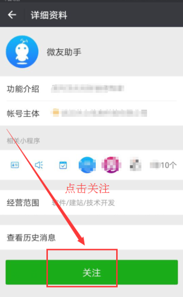 4、弹出微友助手关注界面,选择关注