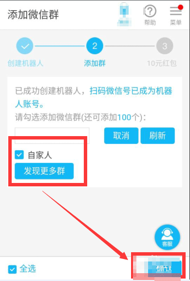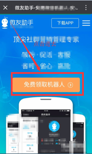6、弹出如下界面,选择免费领取机器人
