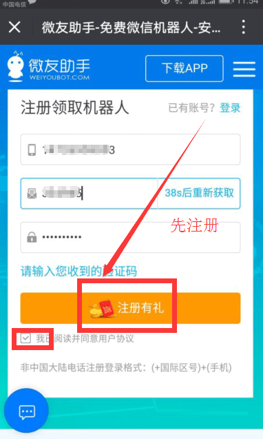 7、弹出注册界面,注册完成后就可以群聊中选择添加机器人。