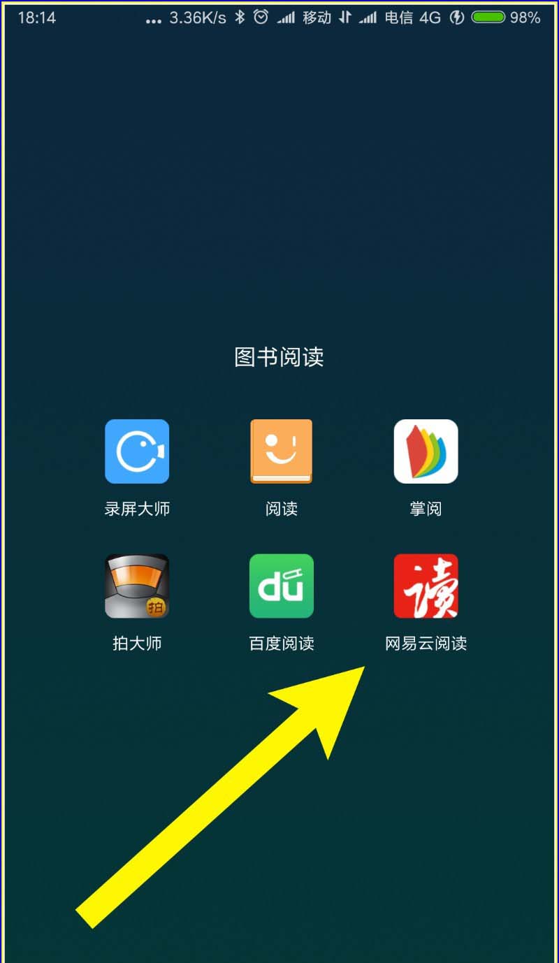 1、首先在手机上面找到网易云阅读。点击进入,如下图所示。