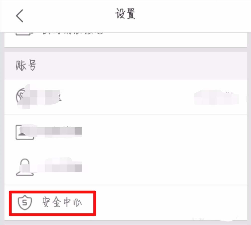 3、设置页面点击【安全中心】