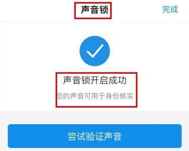 4、到此就成功开通声音锁了。这样我们在新的手机上第一次登录支付宝账号时,就多了一种验证身份的方法。有时这种验证方式是行之有效的,例如,原手机不在身边或丢失了,不能用原手机验证,就可以用声音锁验证身份。