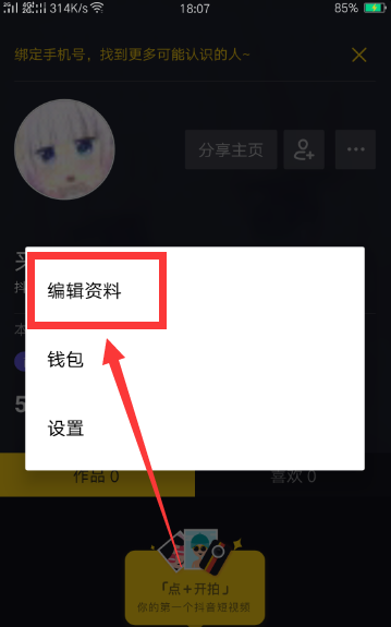 4、再点击“编辑资料”这一项。