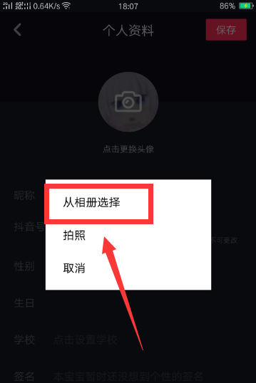 6、再点击“从相册选择”这一项,也可以自己拍照。