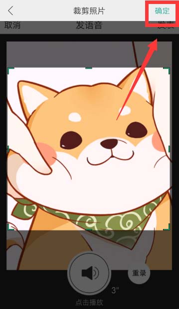 7、【剪裁照片】的页面,剪裁一下头像的大小,再点击右上角的“确定”。