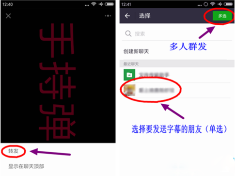 点击“发送”(您的朋友点击之后就会看到有意思的字幕显示)。