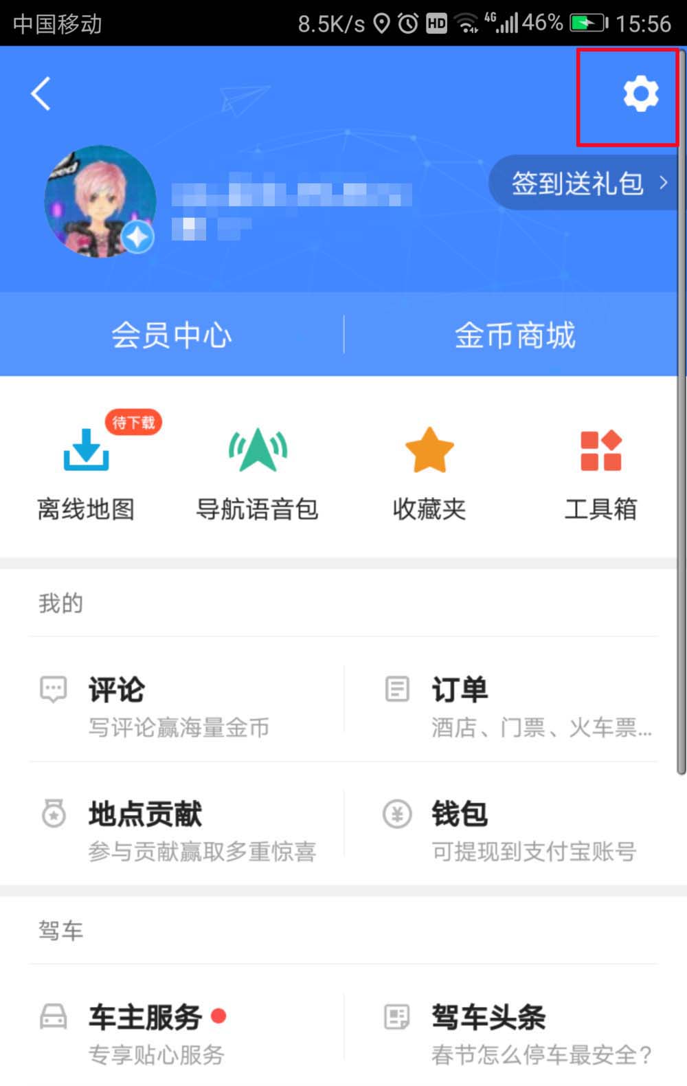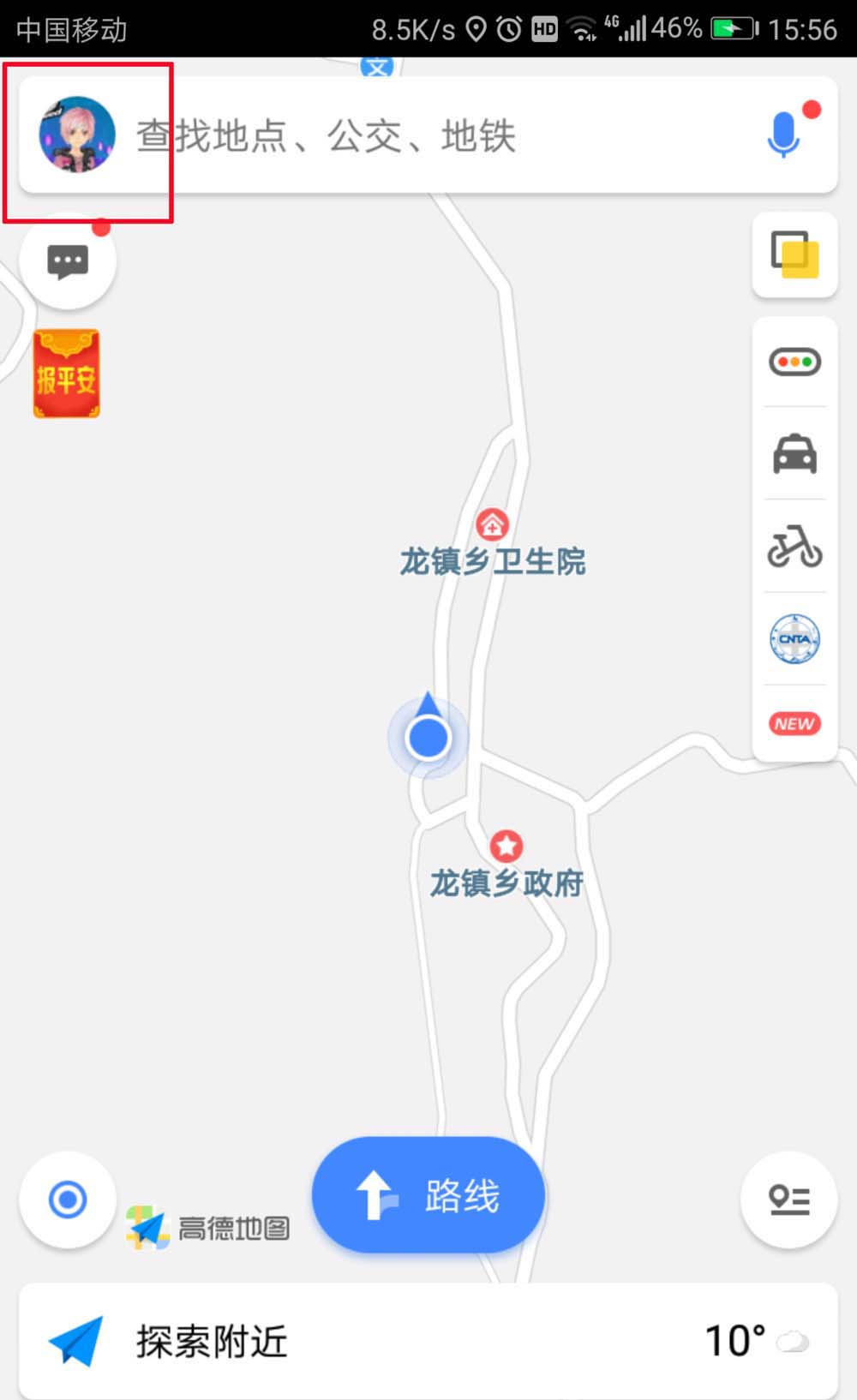 1、首先,我们进入高德地图的主页,点击上方自己的头像。