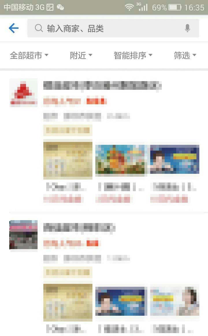 3、在当前所显示的页面中,选择超市名称,并点击进入。
