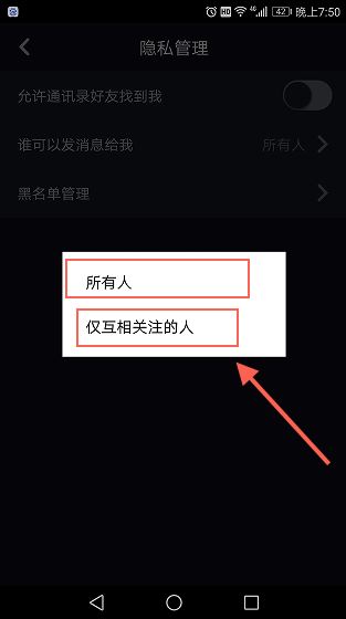 5.选择【仅互相关注的人】。