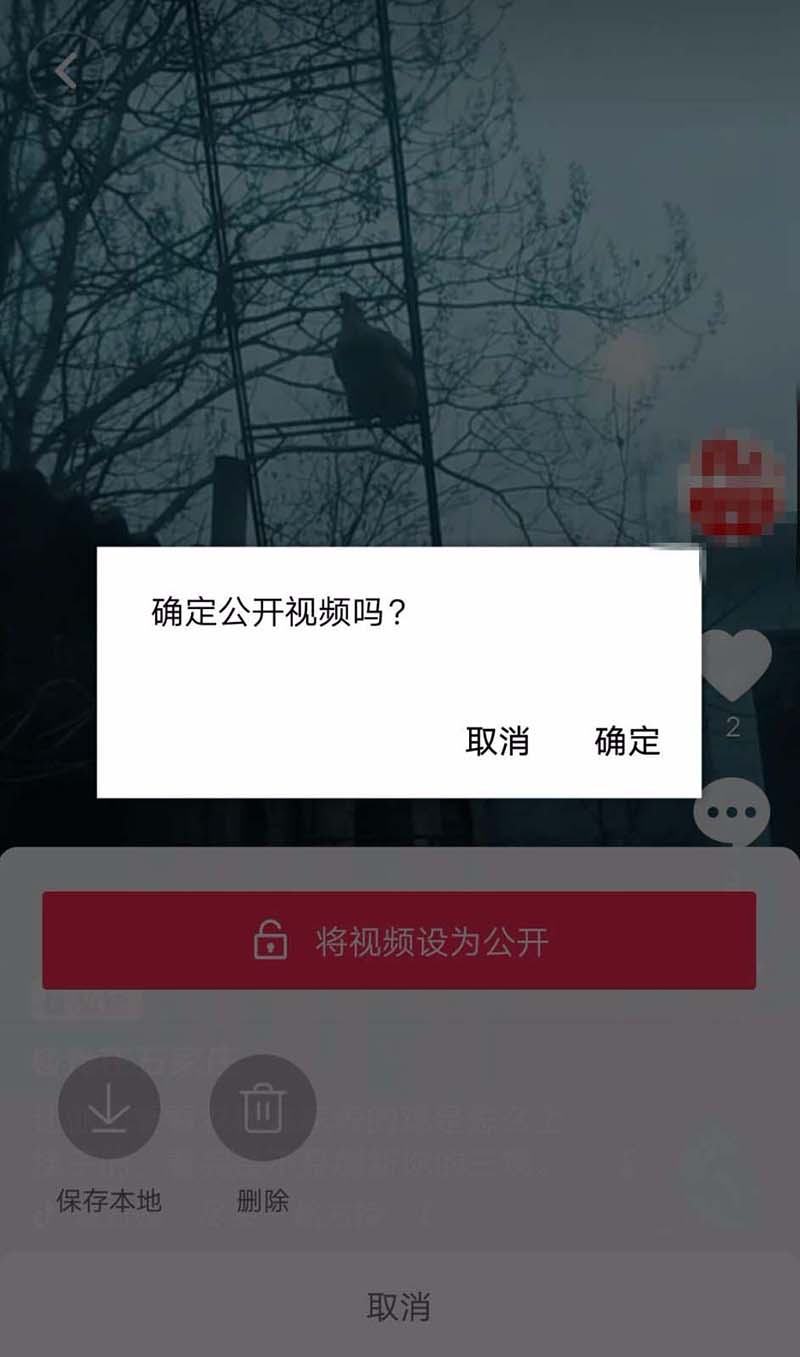 5、点击后随即就会出现是否确定公开这个视频,我们点确定即可。