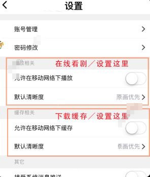 4、大家激活之后可以去设置里,默认清晰度那里选择“原画优先”,这样当大家看剧的时候,就直接选择的是原画哦,非常方便~