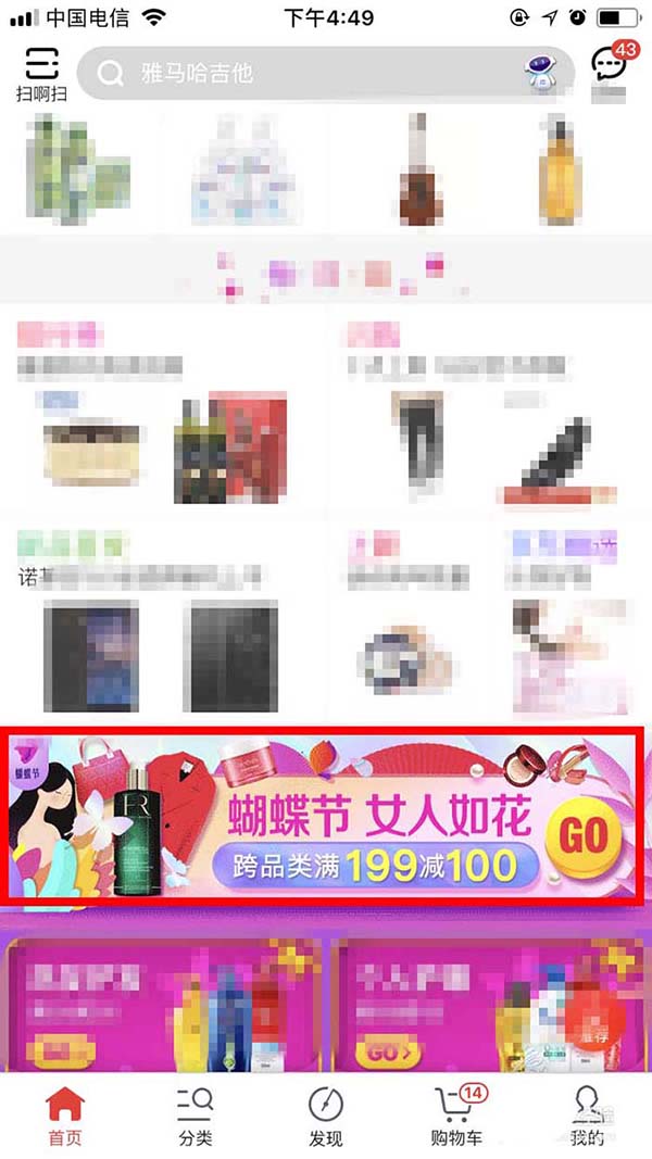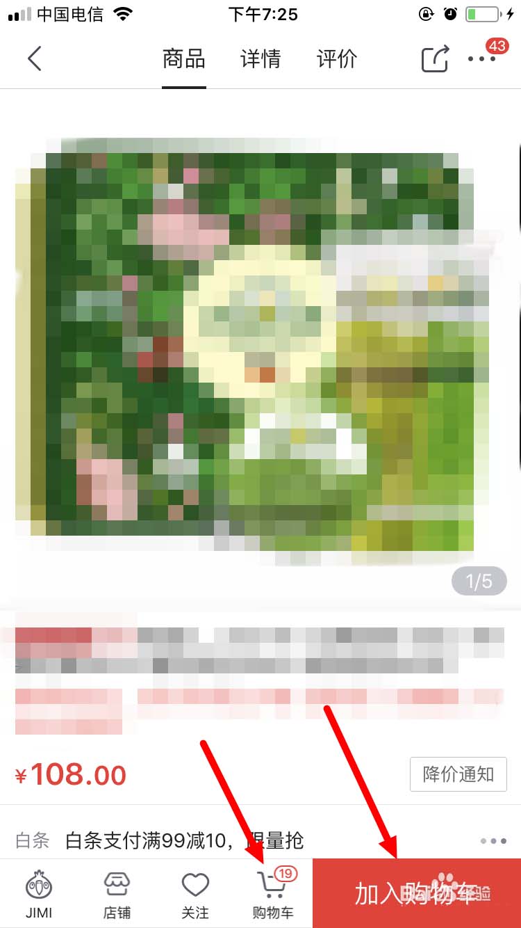1、在“蝴蝶节”活动页面选择商品,然后在选好的商品详情页面,点“加入购物车”后,再点下方的“购物车”标志。