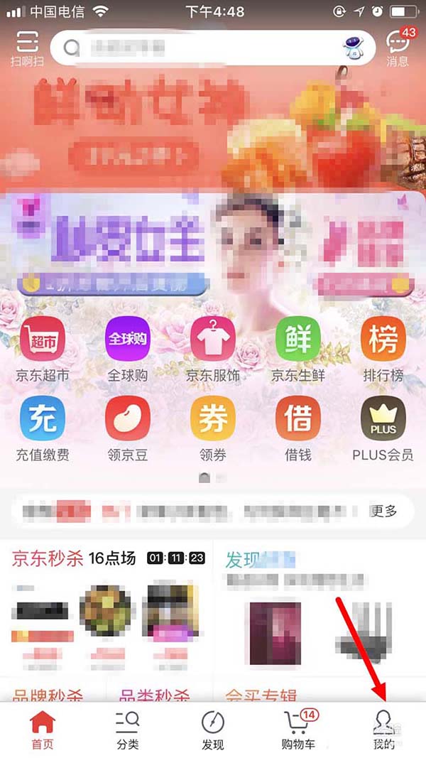 1、在京东App首页点“我的”。