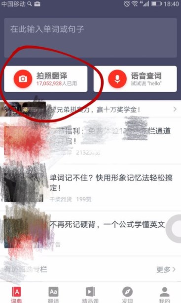 有道词典拍照翻译方法介绍: