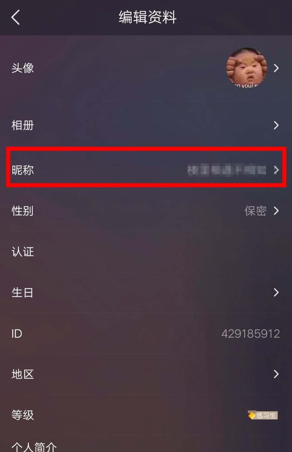 4、点击昵称,进入编辑界面。