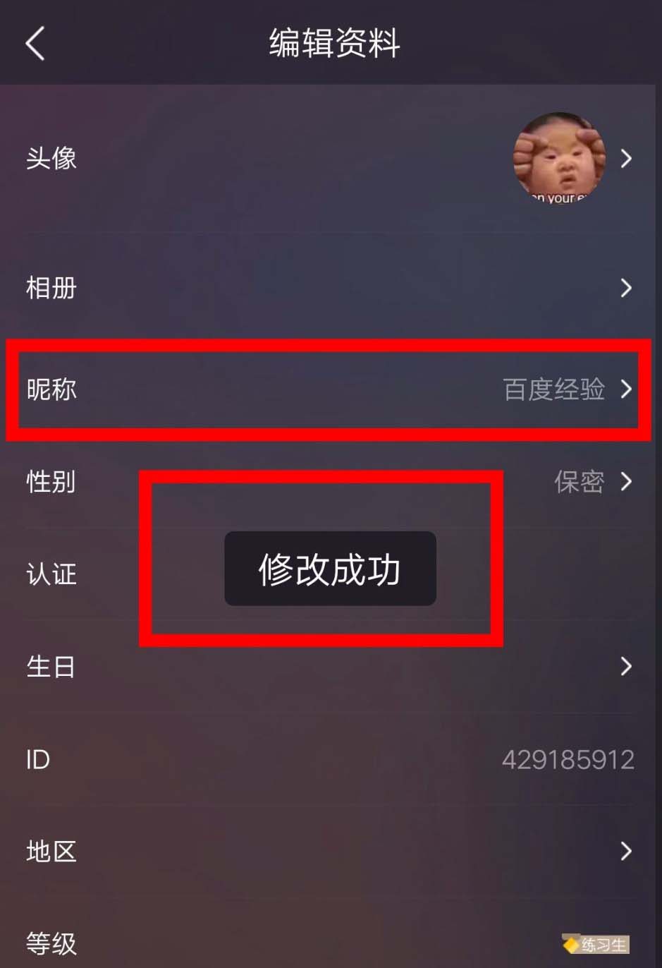 6、修改完成后系统会有提示,同时可以看到昵称已经变成自己修改的名字了!