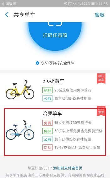 2、进去共享单车界面之后,点击哈罗,如下图所示: