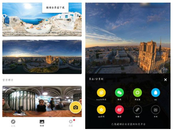 选择微博全景图下载,黏贴链接,下载,然后点开这个全景图,点击分享到本地