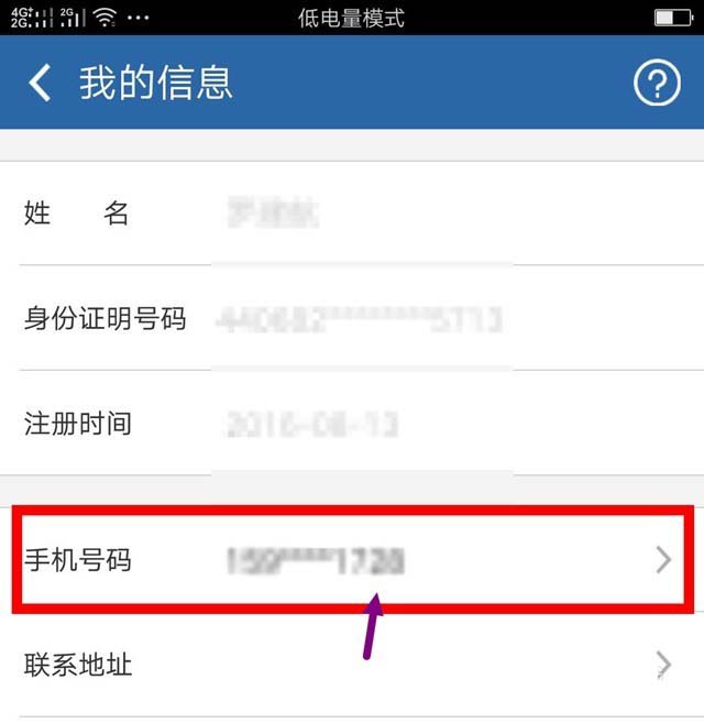 4、进入到“我的信息”主页面之后,点击“手机号码”;
