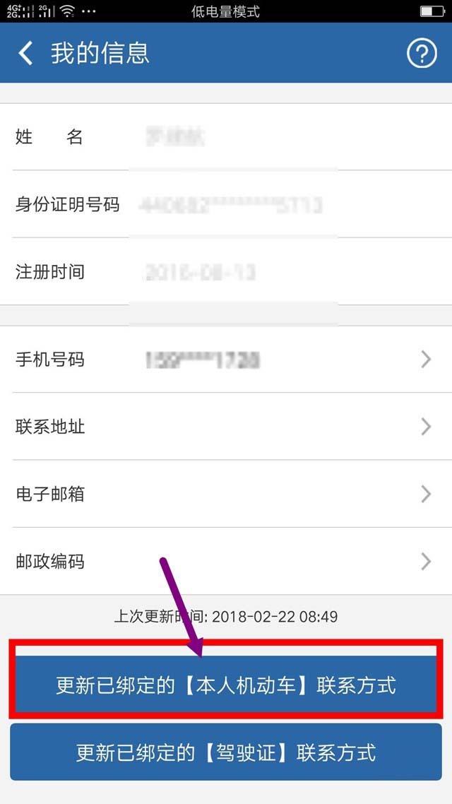 7、最后返回“我的信息”主页面,点击下方“更新绑定联系方式”进行刷新即可。
