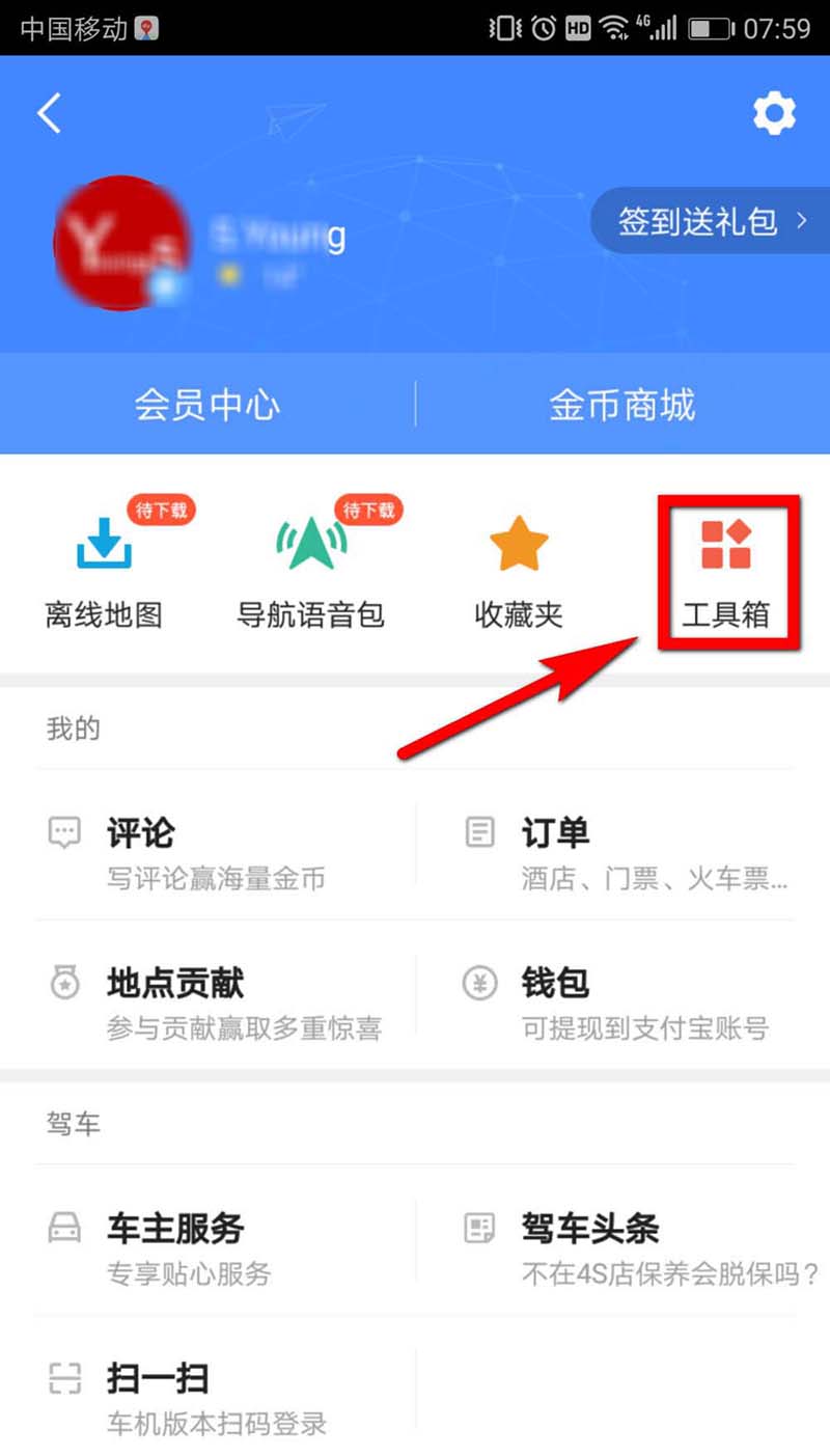 3、此时,页面跳转至该位置,然后在该页面图示位置点击【工具箱】。
