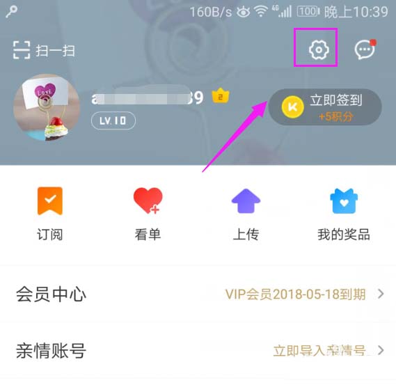 3、在软件我的这,我们接着看到小小的设置按钮,点击下,如图。