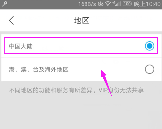 5、可以看到在地区,默认的是选择“中国大陆”,如图。