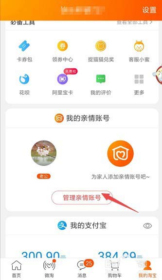 2、在我的淘宝页面中间位置会有一个我的亲情账号。