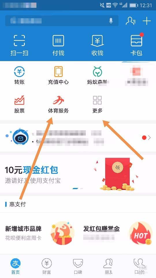 1、打开支付宝这个软件,我们找到“阿里体育”这个模块,如果没有找到,请在“更多”这个选项里面去找,如图所示,且点击这个“阿里体育”~