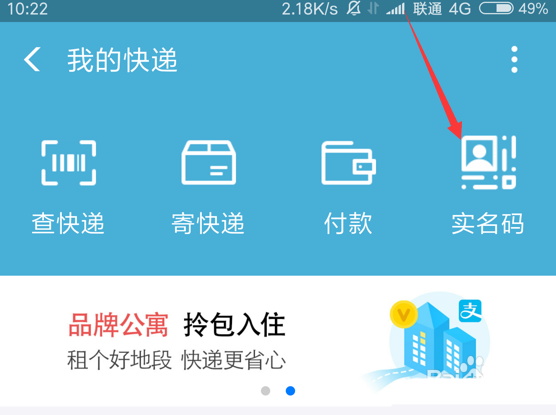 3、打开我的快递后,我们可以看到有实名码,点击它