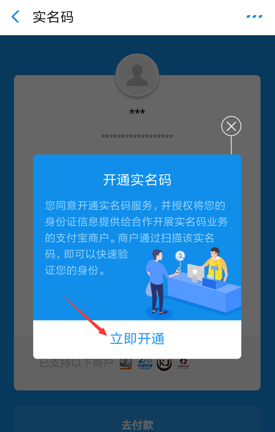 4、在出现的弹窗中我们可以开通实名码功能了,我们点击立即开通