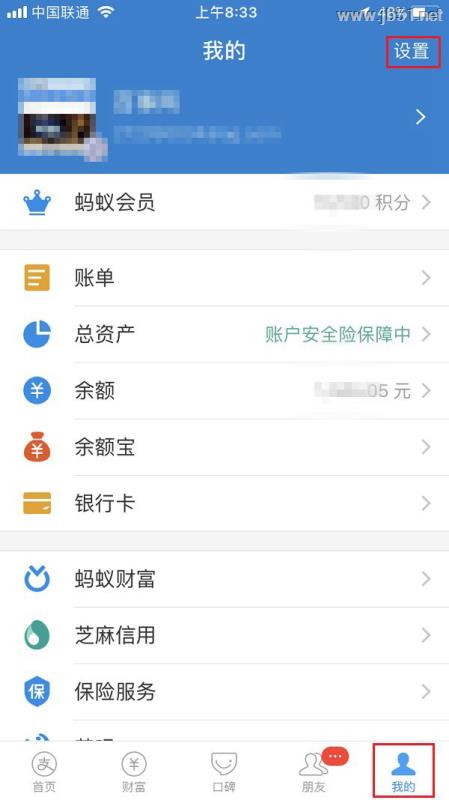一、首先在手机中打开支付宝,然后在「我」的选项界面,点击右上角的「设置」,如下图所示。