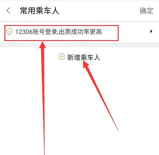 6、接着就会弹出常用乘车人的界面,如果你之前没设置过那就重新按照提示填写相关信息添加即可,也可登录12306,将12306中的乘车人信息导入。选择好了后,点击确定,提交订单、付款即可。