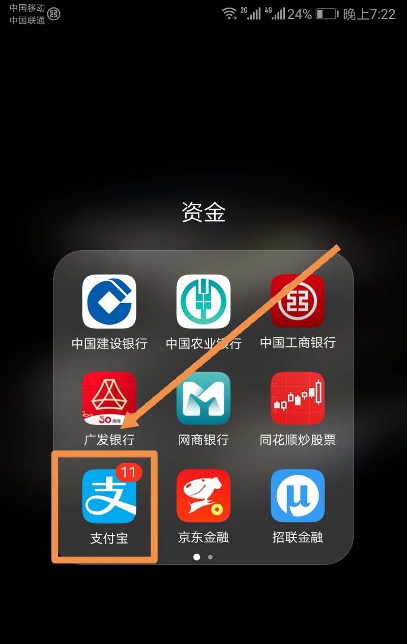1、首先需要点按手机中的支付宝应用标志,如下图所示。