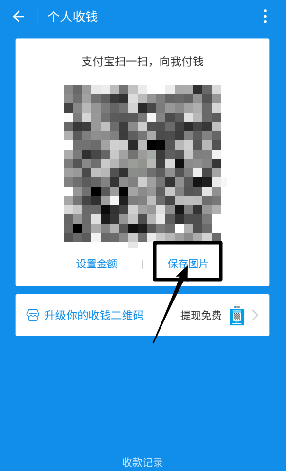 2、进入支付宝收款二维码,点击【保存图片】