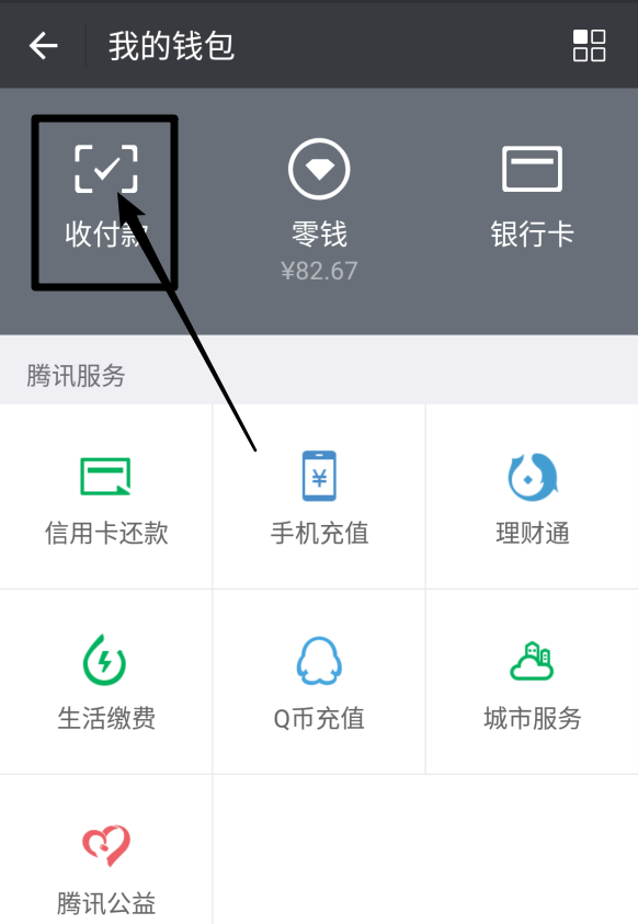 2、进入钱包界面,我们点击左上角的【收付款】