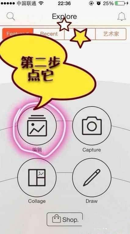 1、首先,进入Picsart后,选择编辑,然后选择一张你准备画画的图片。