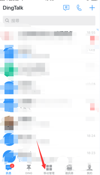1、打开手机钉钉软件之后点击底部的小模块点击移动管理按钮。