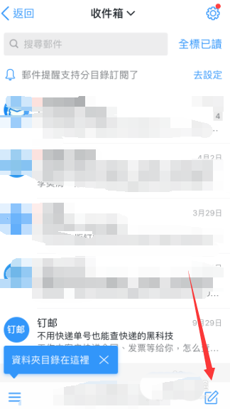 3、在收件箱界面点击底部右下角的画笔按钮。