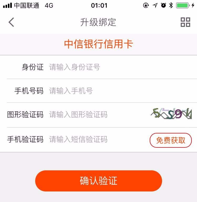 5、然后会跳转到升级绑定的页面,需要填写你的个人信息,然后确认验证即可