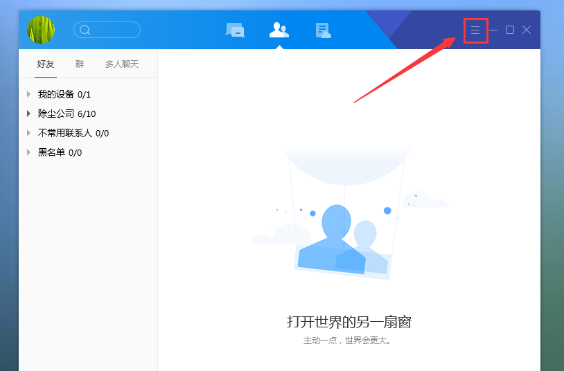 2、打开后弹出一个新的窗口,在这个窗口的右上角找到主菜单的图标。