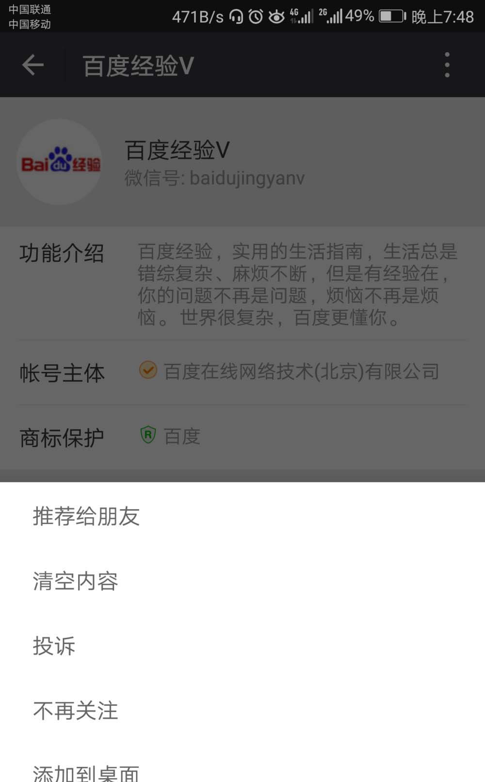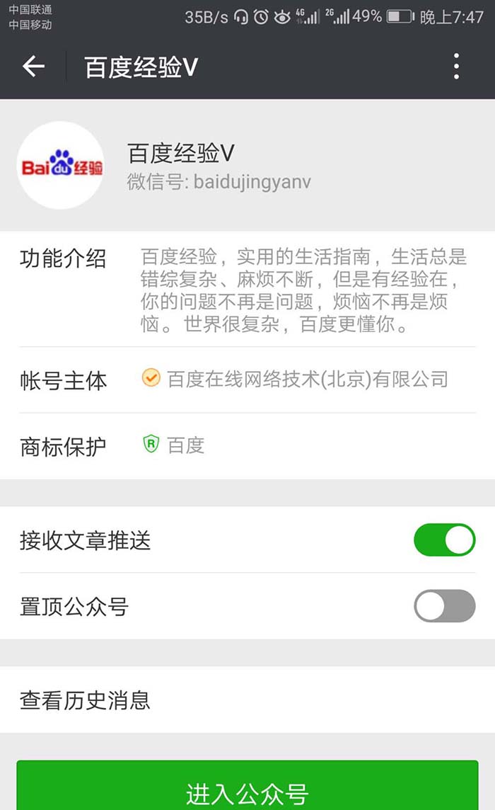 4、点击需要添加到手机桌面的公众号