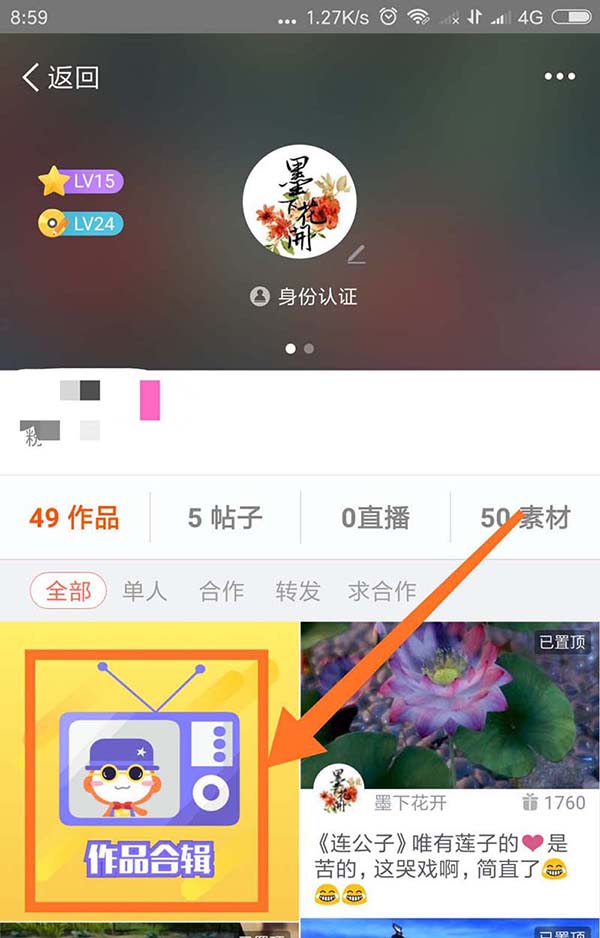 6、勾选成功后会有个绿色的『√』号,然后点击右上角的『完成』,再回到你的作品页面就有个『作品合集』了。
