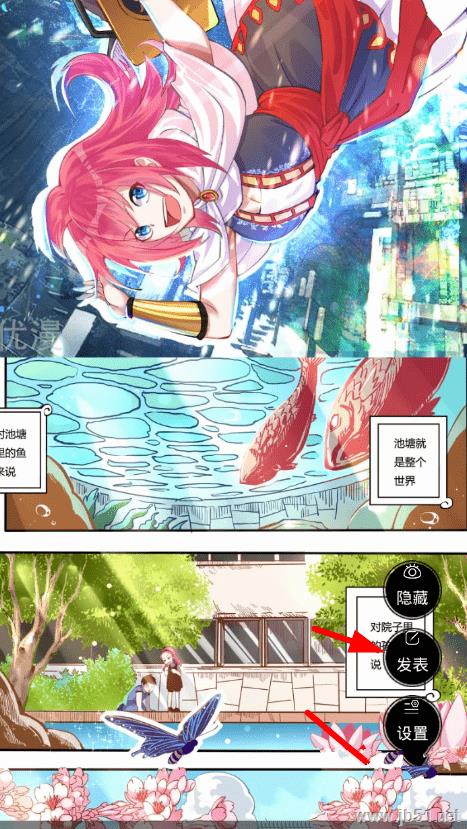 2、接下来点击漫画页面右下角弹幕选项唤醒菜单,就可以从中选择“发表”功能来对弹幕的内容进行编辑了。