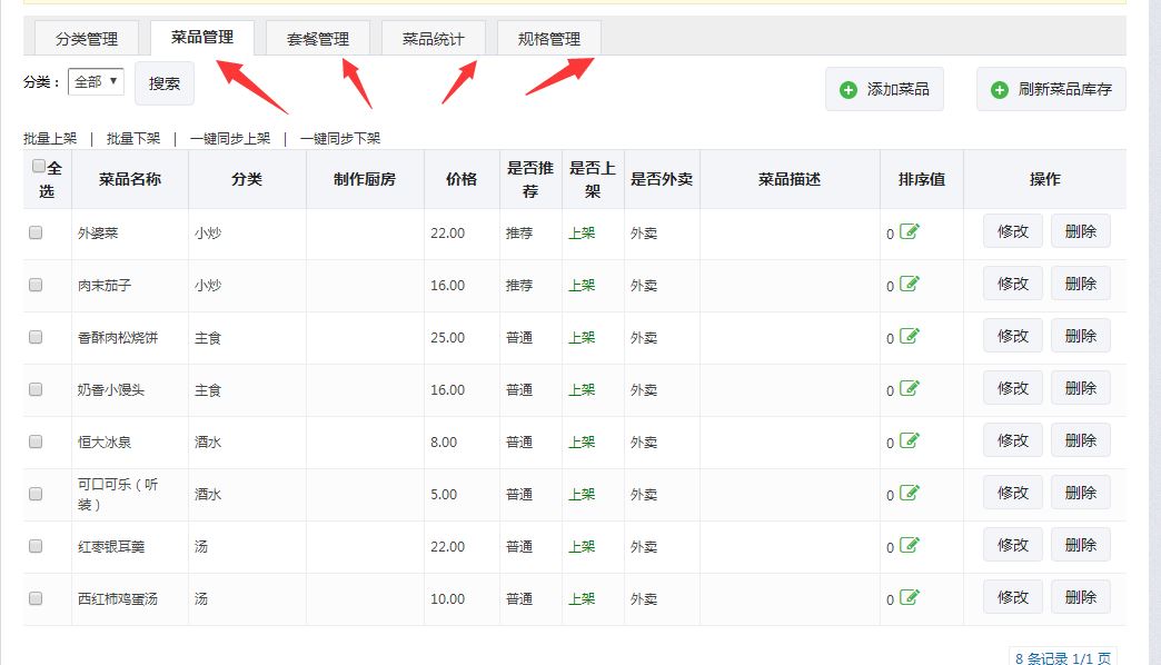 第四步:添加菜品,首先添加好菜品的分类,再添加每个菜的图片和名称,包括价格等等,设置好保存即可
