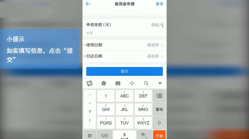 4、填写好申请人、部门、事由和金额等信息以及审批人、抄送人后点击提交即可。