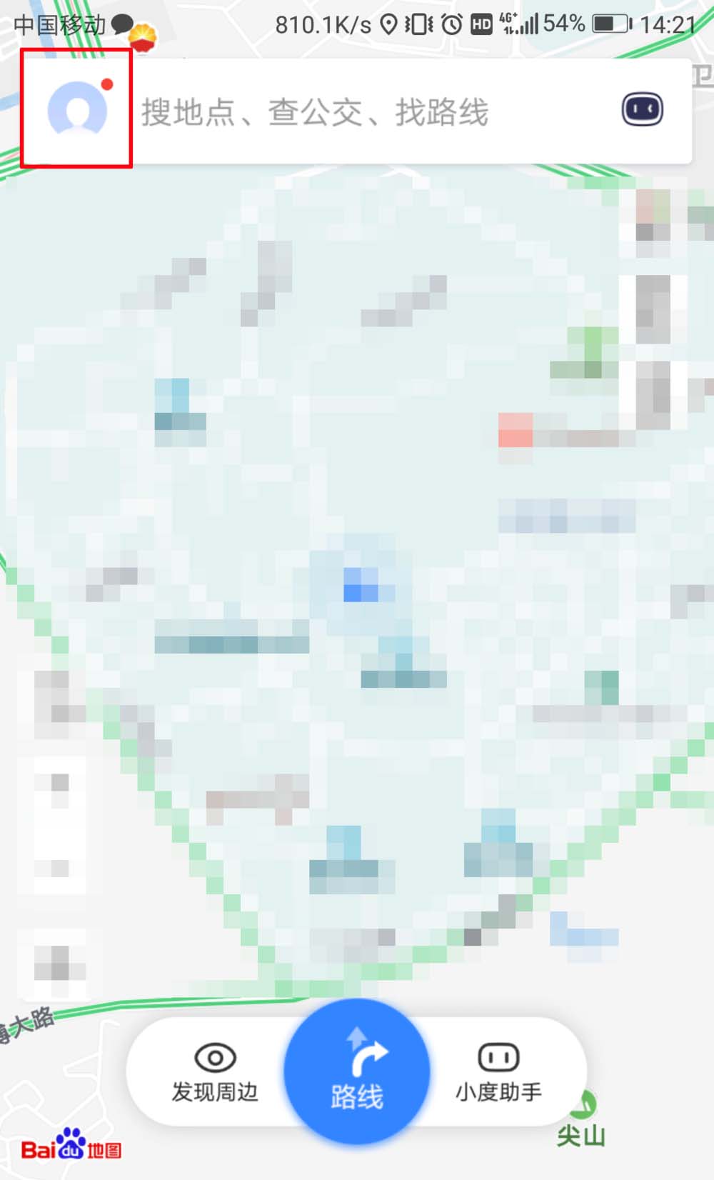 1、大家进入百度地图之后,点击上方自己的那个头像。
