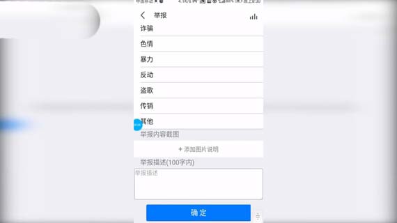 5、在下一个界面中,选择举报类型,选择确定即可。