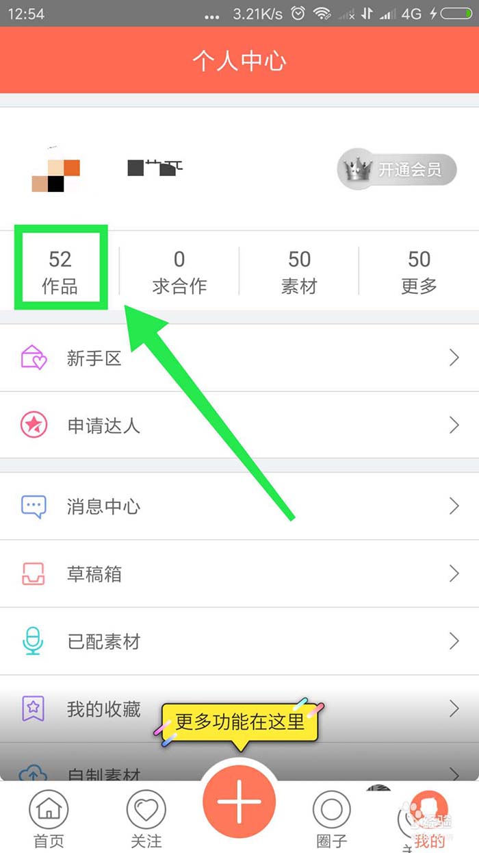 2、进入我的个人中心,然后点击左上角的『作品』;