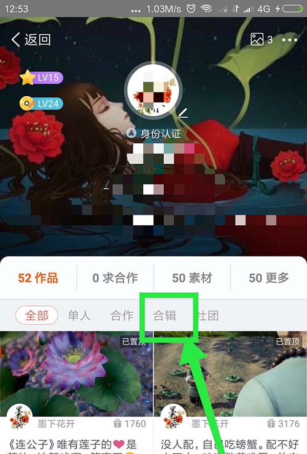 3、点击个人空间页面里的『合集』;
